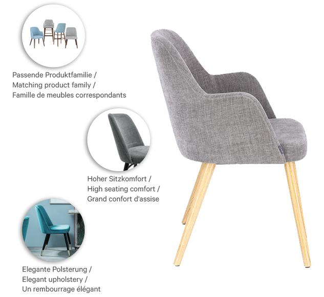Zeitlos, klassisch und mit klarer Retro-Note: Der Polsterschalenstuhl Hada passt in Restaurant, Bar oder Hotel-Lounge – wahlweise mit oder ohne Armlehnen. Die komfortable Polsterschale ist in den Bezugsstoffen Cosy und Minea erhältlich. Für den Look stehen drei Holz-Untergestelle in Meranobraun, Eiche oder Schwarz mit Messingsocken bereit, alternativ ein schwarzes Metallgestell. Praktisch im Betrieb: Das schwarze Drehgestell mit Rückstellung richtet sich nach dem Aufstehen automatisch aus, wirkt sofort aufgeräumt und spart Handgriffe im Service. Gleichzeitig erleichtert die Drehfunktion das Hinsetzen und Aufstehen und reduziert Stuhl-Schieben – leiser und bodenschonender.- Zeitloses Retro-Design: Hada wirkt klassisch hochwertig und passt in Restaurant, Bar und Hotel-Lounge