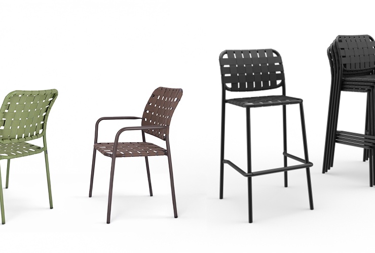 Ein echtes GO IN Design-Meisterstück! Die innovative Flechtung von Sitzfläche und Rücken mit breiten Gurten verleihen dem stapelbaren Barhocker Brigo seinen besonderen Charme. Das Gestell ist aus pulverbeschichtetem Aluminium gearbeitet. Die Gurte bestehen aus Polypropylen. Besonders praktisch: Er besitzt ein leichtes Gewicht und bietet einen hohen Sitzkomfort. Dank seiner Stapelbarkeit von bis zu acht Hockern, kann er schnell und einfach platzsparend verräumt werden. Ideal für die gastronomische Bewirtung im Außenbereich. Der Barhocker ist in einer großen Farbauswahl erhältlich. Optional kann ein Sitzkissen mit den Maßen 40 x 40 cm aufgelegt werden.