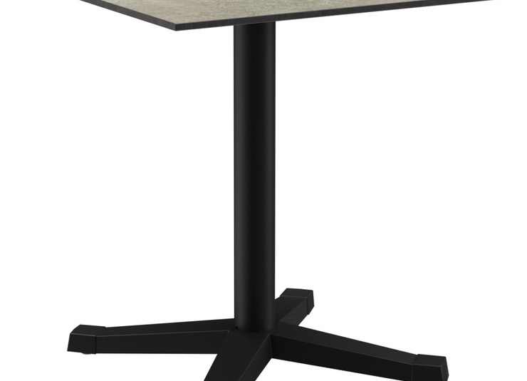 Das Tischmodell Kata - für den Indoor- ebenso wie für den Outdoor-Einsatz geeignet - hat ein schwarz lackiertes Stahlgestell mit klassischem, geraden Zehenfuß, das sich mit verschiedenen Tischplatten kombinieren lässt. Es ist in Esstischhöhe, mit FLAT-Technologie oder verstellbaren Bodengleitern erhältlich und kann zusätzlich mit einem Kippmechanismus zum platzsparenden Verstauen ausgestattet werden. Die hydraulisch gelagerten Bodengleiter des FLAT Systems passen sich Bodenunebenheiten automatisch perfekt an, somit sagst Du wackelnden Tischen für immer Adieu! Das patentierte System reagiert beim Platzieren des Tisches sofort auf den Untergrund und garantiert somit einen stabilen Stand.